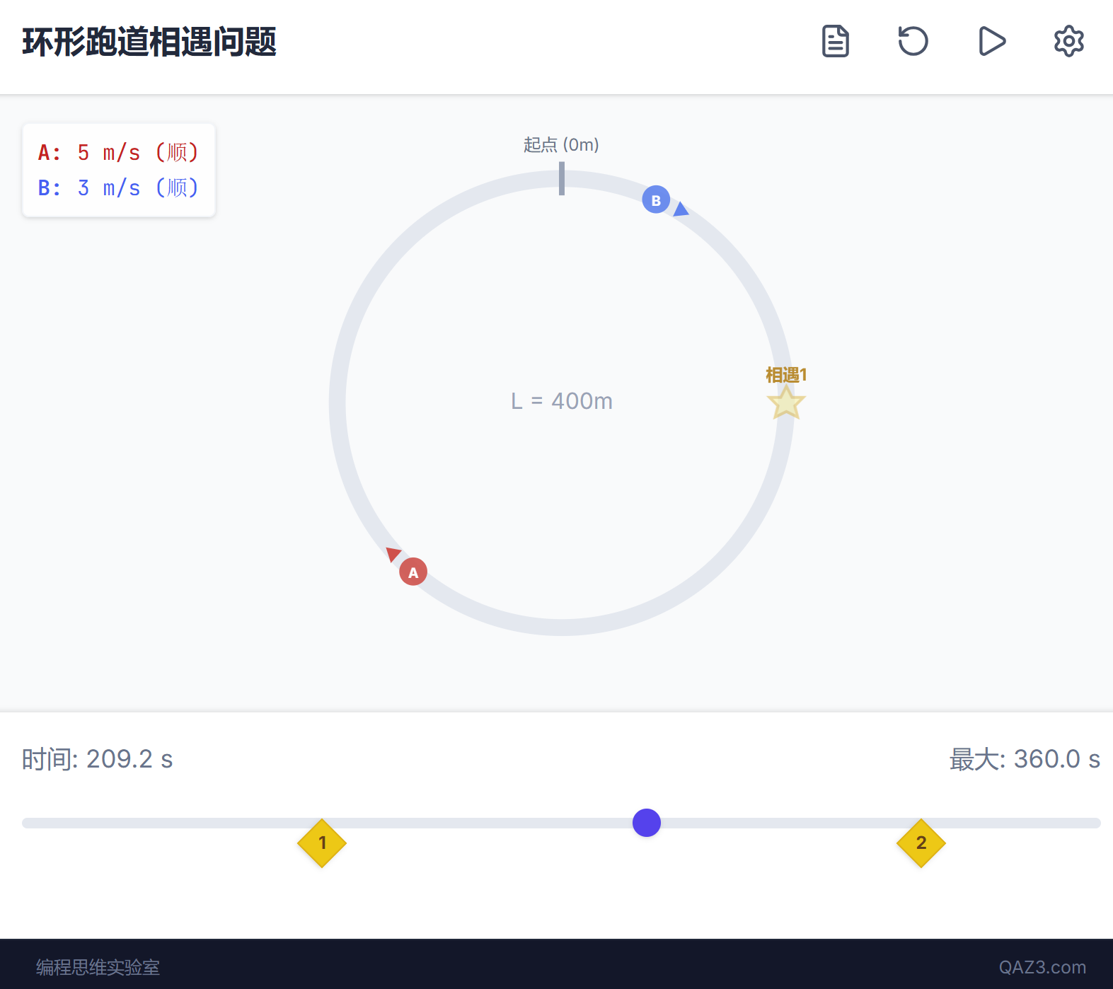 如果想清晰理解题目,敏捷找到关键点,需要凭空想象复原过程,这对无经验的人是有困难。所以我做了模拟器,通过模拟器动态完全复原过程,可以播放观看,任意拖动时间查看细节,帮助同学更好体验理解探究。